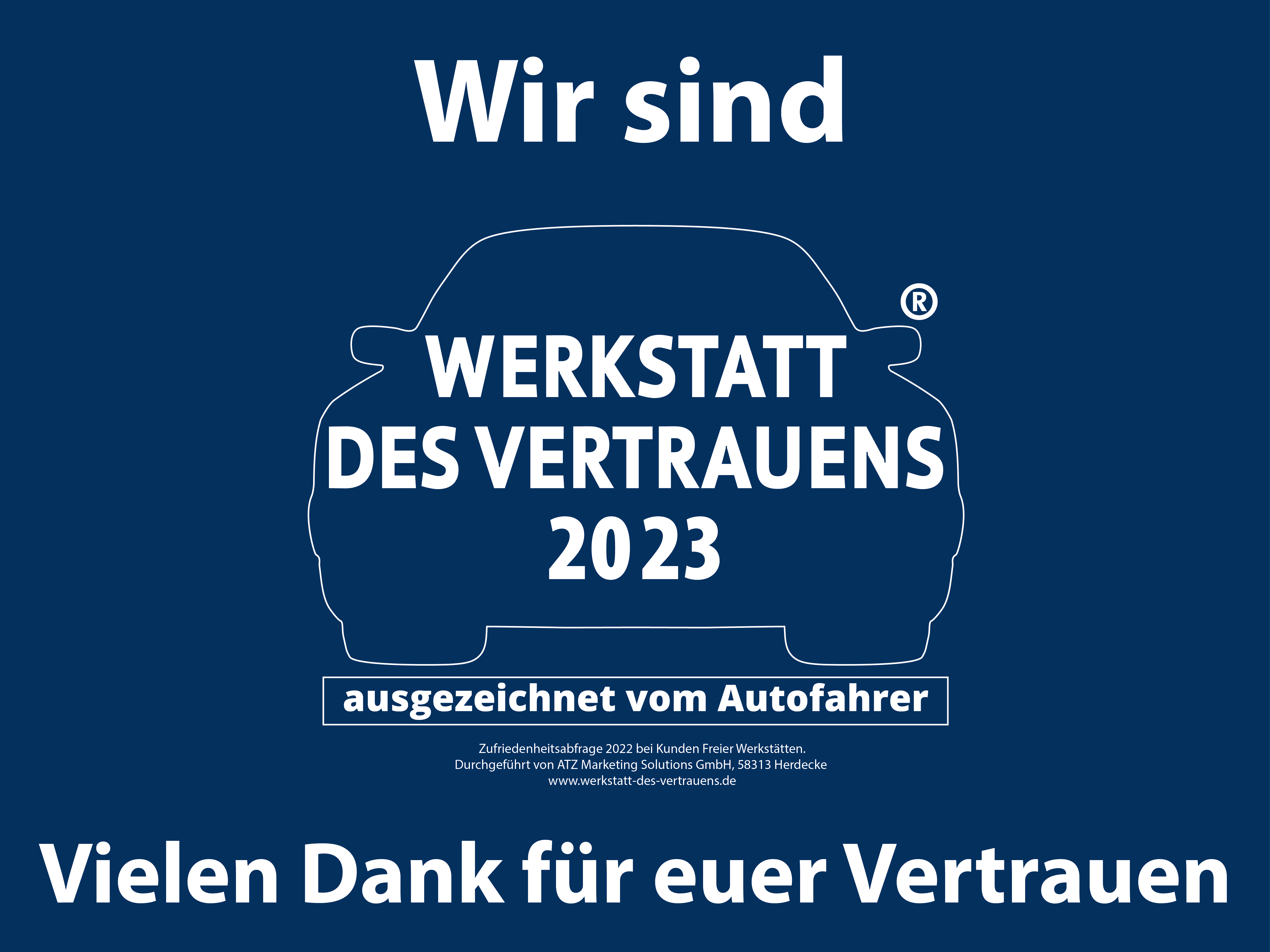Auch in diesem Jahr haben wir uns wieder für das Gütesiegel Werkstatt des Vertrauens angemeldet und sind dank Ihnen, unserer zufriedenen Kunden, erneut zur Werkstatt des Vertrauens gewählt worden.